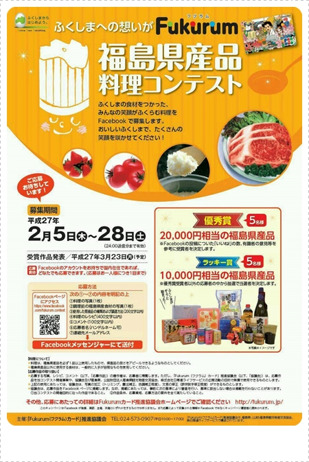 お知らせ「ふくしまへの想(おも)いがFukurum県産品料理コンテスト」募集のお知らせ