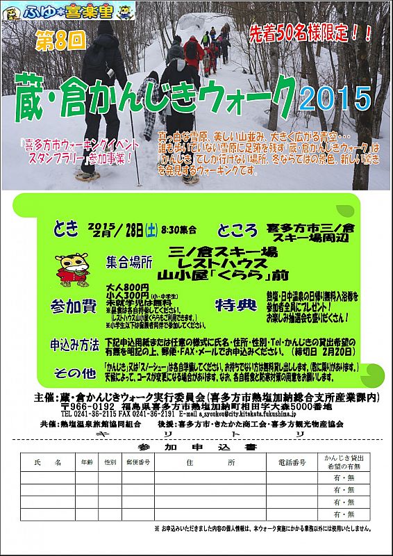 お知らせ2/28「第8回 蔵・倉かんじきウォーク2015」開催!