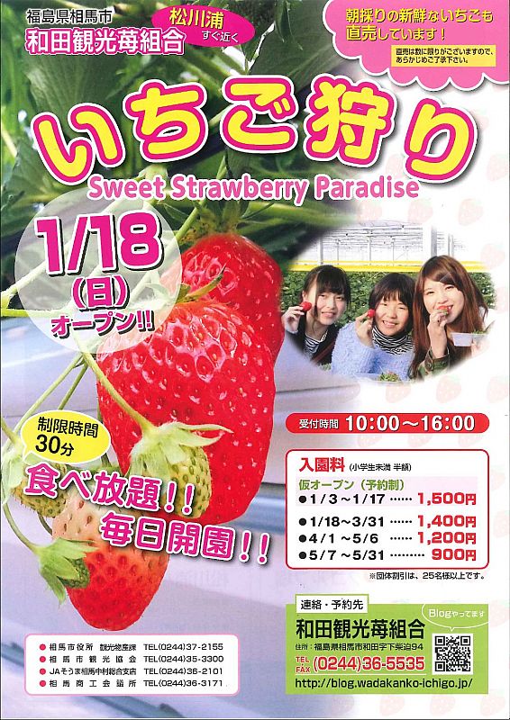 お知らせ1/18~和田観光苺組合「いちご狩り」オープン!