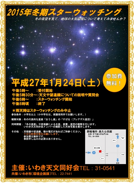 特集レポート2015年冬期スターウォッチング1月24日(土)開催