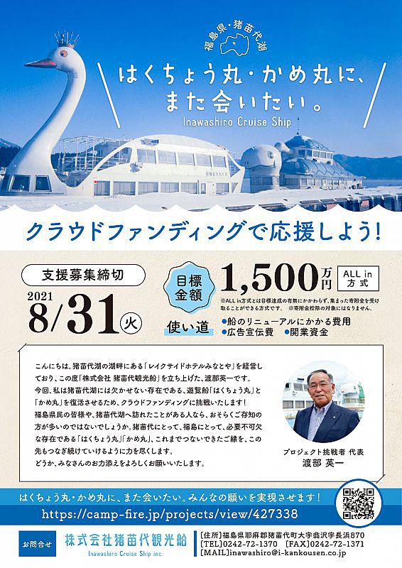 お知らせはくちょう丸・かめ丸に、また会いたい。クラウドファンディングで応援しよう!【8/31締切】
