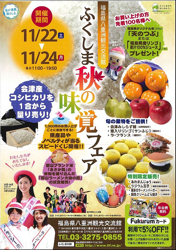 お知らせ「ふくしま秋の味覚フェア」を開催します!
