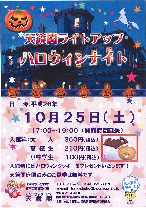 お知らせ10/25「天鏡閣ライトアップ ハロウィンナイト」のお知らせ