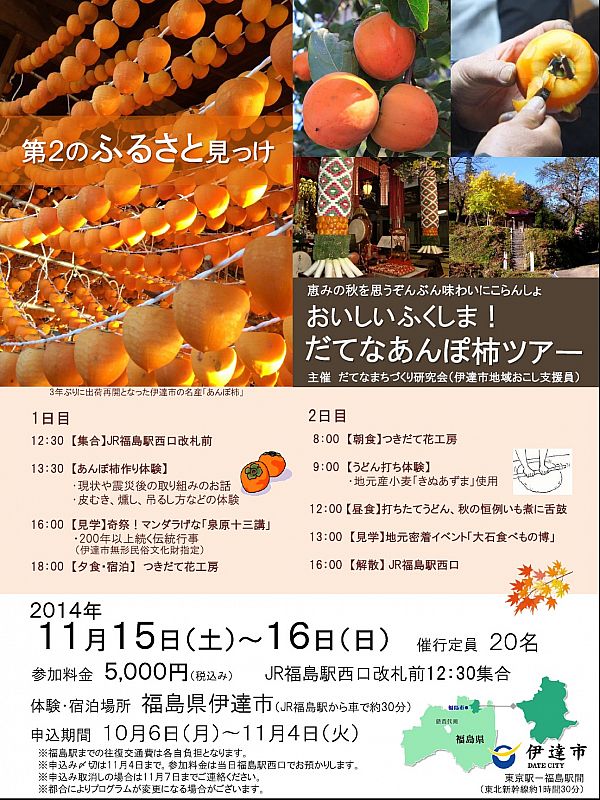 お知らせ「おいしいふくしま!だてなあんぽ柿ツアー」のお知らせ