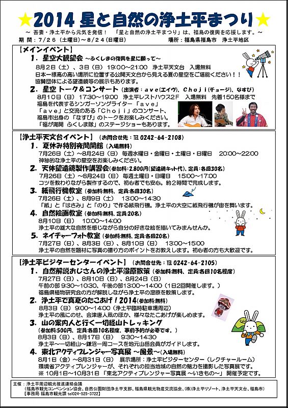 お知らせ「2014星と自然の浄土平まつり」開催中!