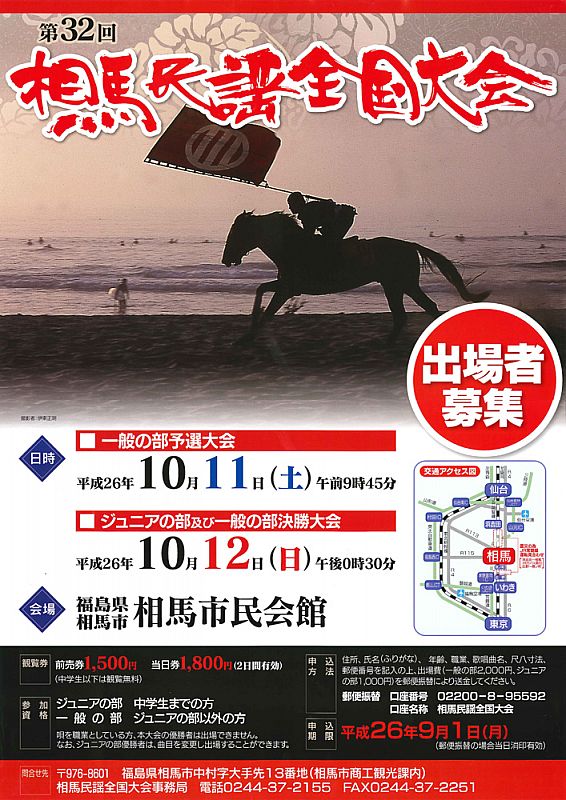 お知らせ10/11、12「第32回相馬民謡全国大会」開催!
