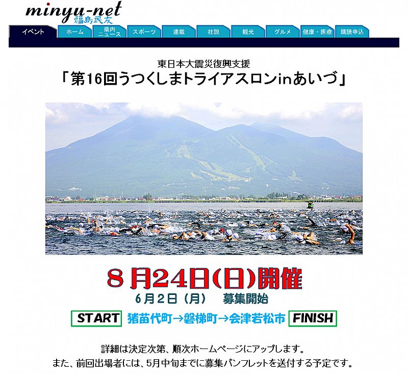 お知らせ8/24「第16回うつくしまトライアスロンinあいづ」開催!