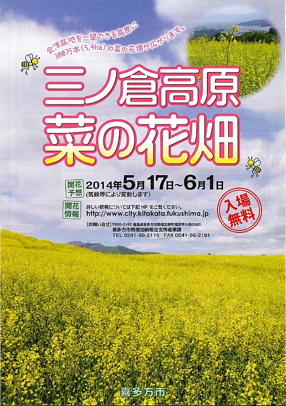 お知らせ三ノ倉高原の菜の花畑、見ごろ迎える!