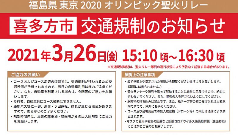特集レポート聖火リレーに伴う駐車場規制・交通規制(喜多方市美術館)