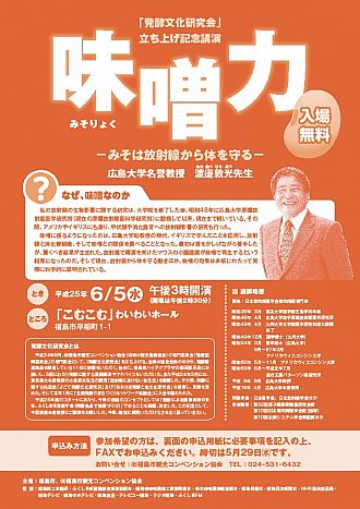 特集レポート講演会のお知らせ「味噌力―みそは放射能から体を守る―」