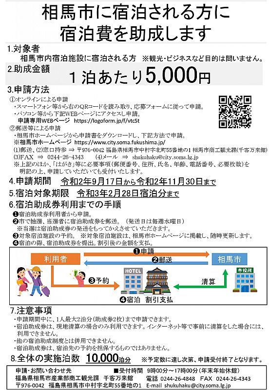 お知らせ相馬市に宿泊される方に宿泊費を助成します!【抽選】