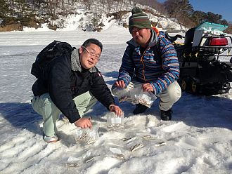 特集レポート桧原湖ワカサギ釣り情報『今日は、お祭りお祭り!トップ釣果はなんと378匹!!』