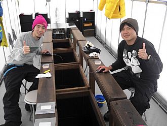 特集レポート桧原湖ワカサギ釣り情報『春の嵐で急遽スノボから予定変更!! ワカサギ釣りなうw 』