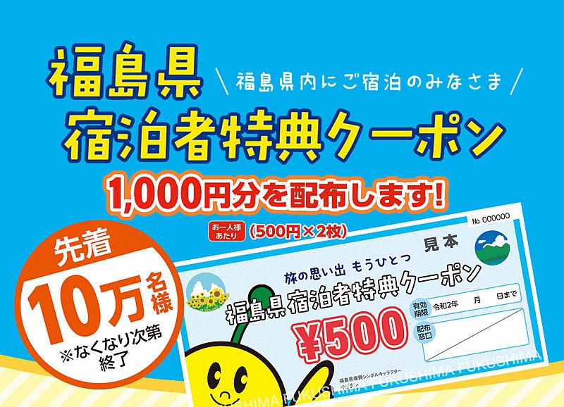 お知らせ福島県宿泊者特典クーポン【配布終了】のお知らせ