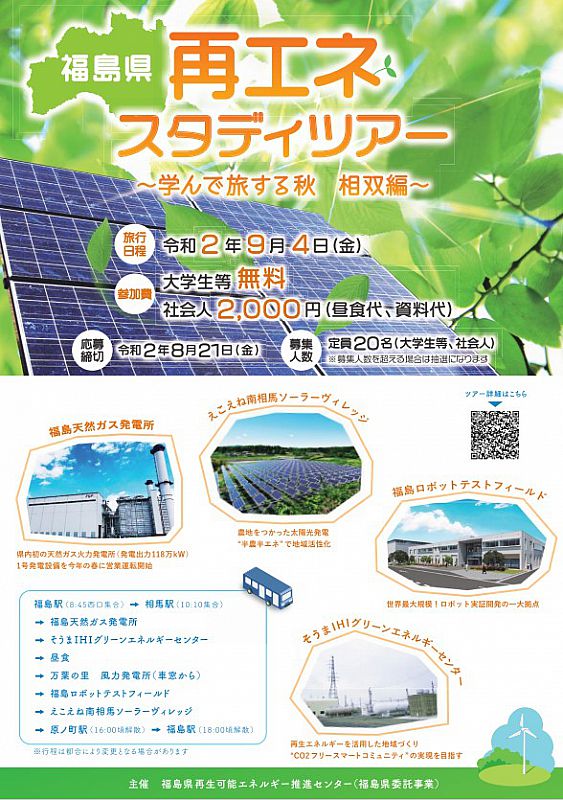 お知らせ令和2年9月4日(金)開催!福島県再エネスタディツアー~学んで旅する秋 相双編~