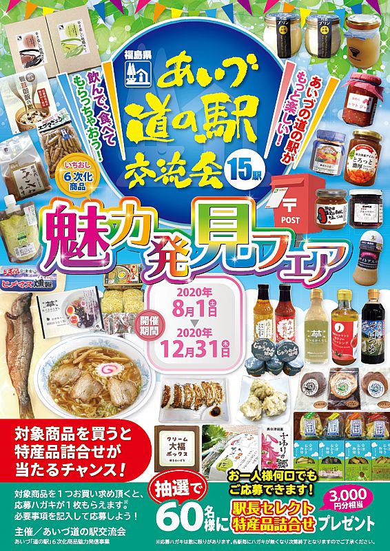 お知らせ8/1-12/31あいづ「道の駅」交流会 6次化商品魅力発見フェア開催中!