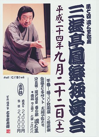 特集レポート三遊亭鳳楽 独演会 9月22日(土)季の郷「湯ら里」