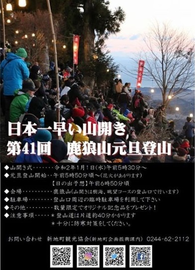 お知らせ日本一早い山開き「鹿狼山元旦登山」