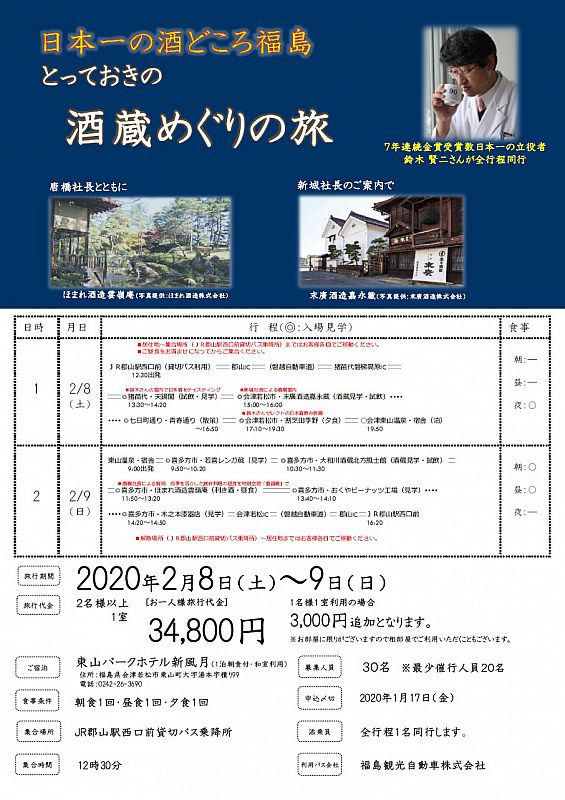 お知らせ日本一の酒どころ福島・とっておの酒蔵めぐりの旅