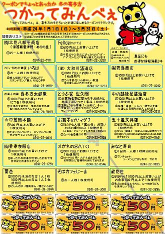特集レポートクーポンでちょっとあったか冬の喜多方「つかってみんべぇ」が発行されます