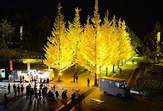 特集レポート★福島市あづま総合運動公園のイチョウ並木でライトアップスタートです★