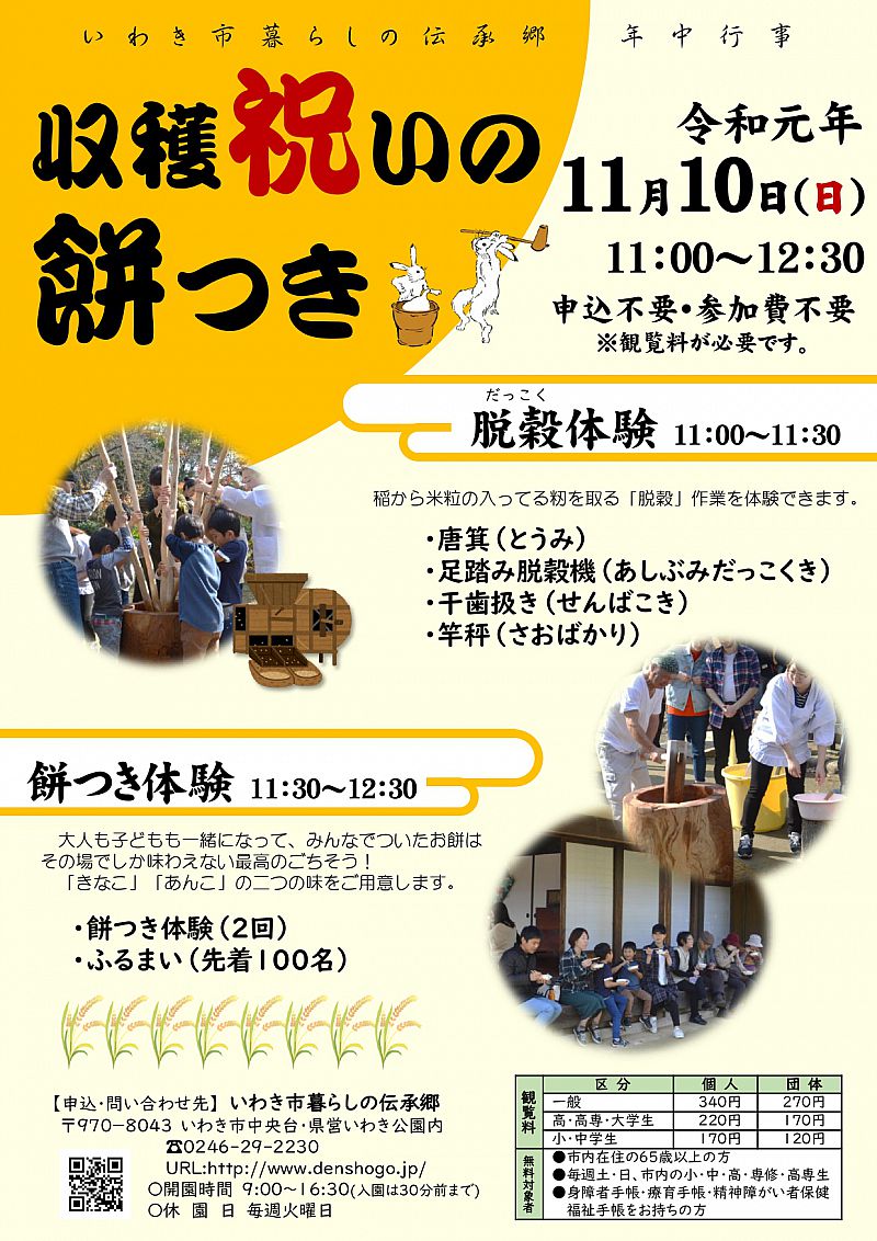 特集レポートいわき市暮らしの伝承郷 年中行事「収穫祝いの餅つき」を行います!