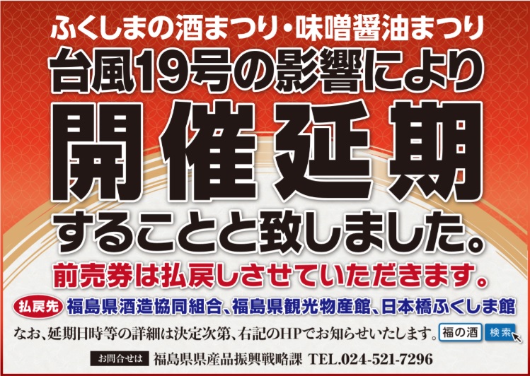 お知らせ「ふくしまの酒まつり・味噌醤油まつり」開催延期について イベント