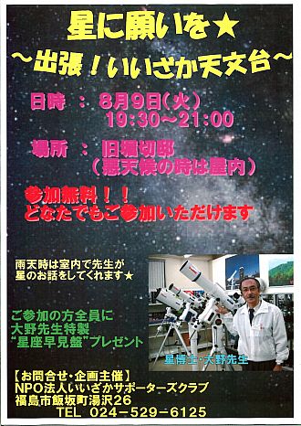 特集レポート★☆星に願いを☆★飯坂温泉に出張天文台を開設します!!