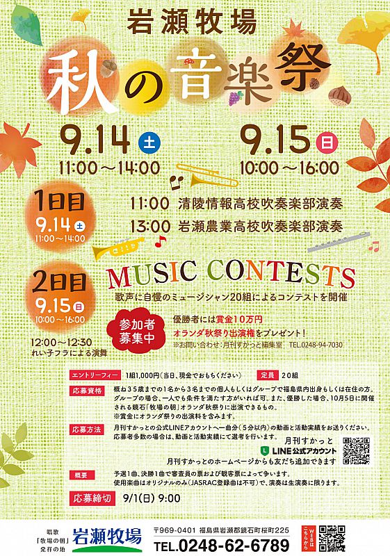 お知らせ9月14日~15日 岩瀬牧場 秋の音楽祭