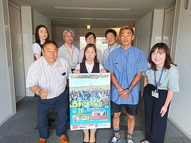 お知らせ10/20「第32回高原の鮫川 うまいもの祭り」PRに鮫川村のPR隊の皆様が来所されました!