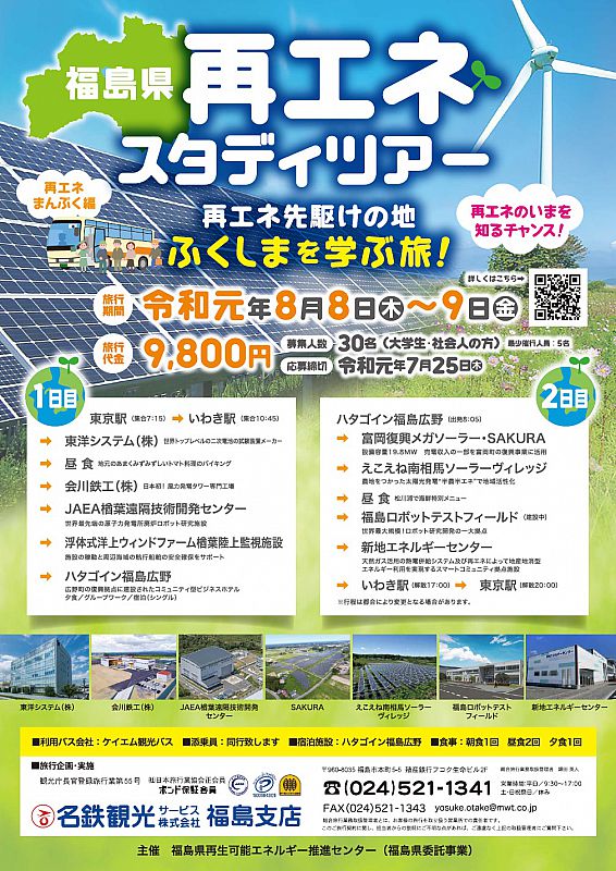 お知らせ8/8-9「福島県再エネスタディツアー」開催!!