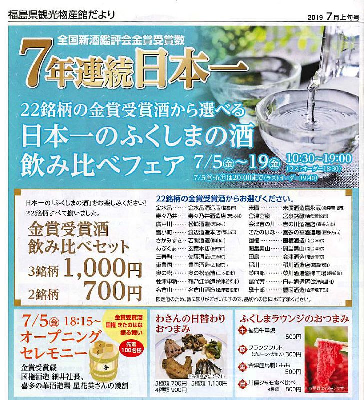 「日本一のふくしまの酒飲み比べフェア」開催中!