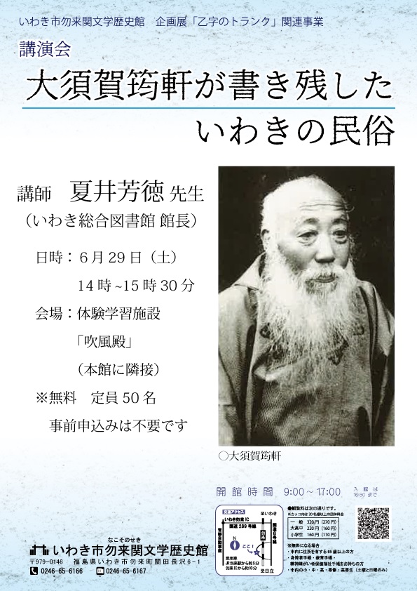 特集レポート吹風殿にて 講演『大須賀筠軒が書き残したいわきの民俗』を開催します