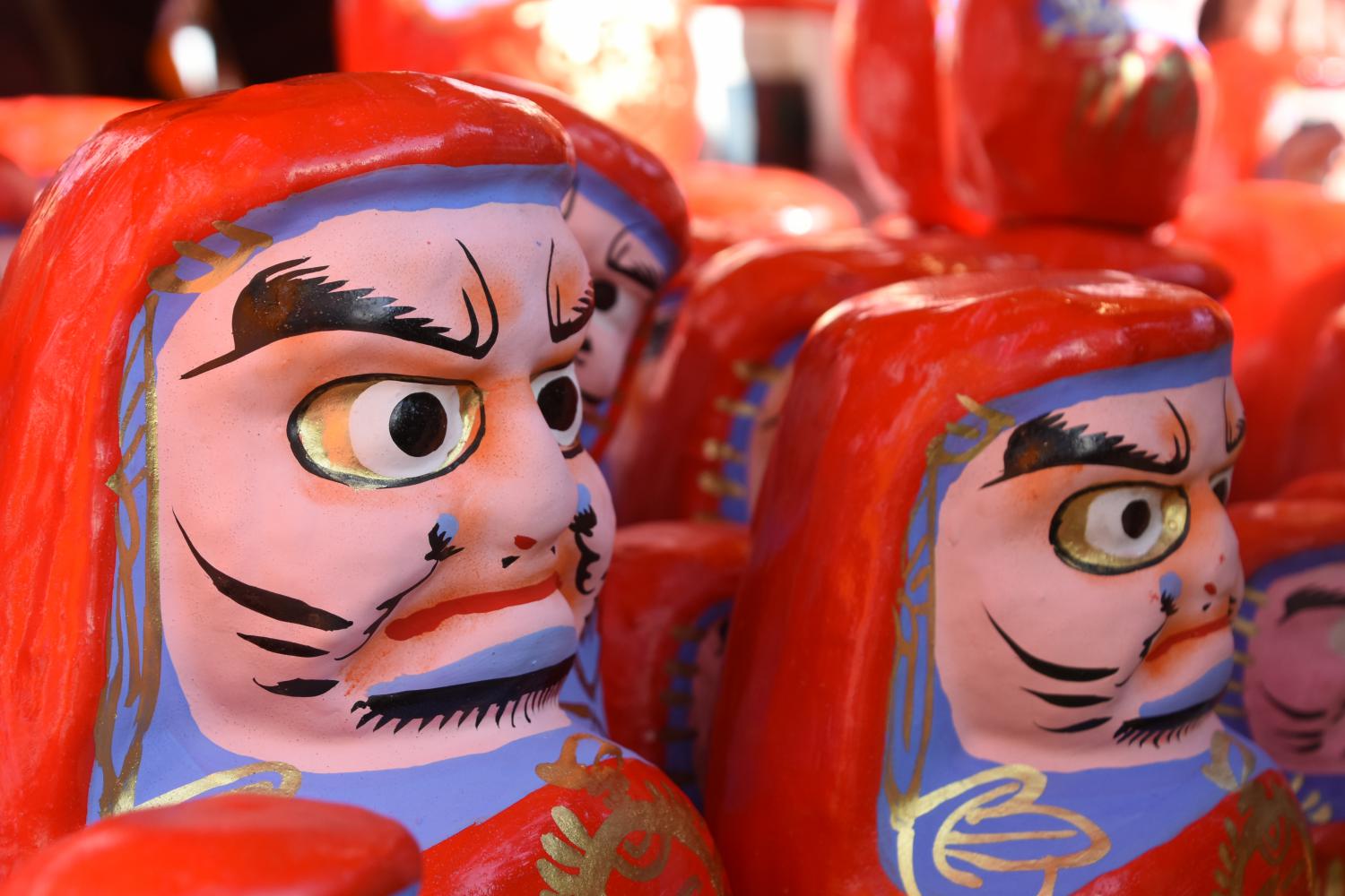 高柴デコ屋敷で作られただるまや張子人形がズラリと並びます。