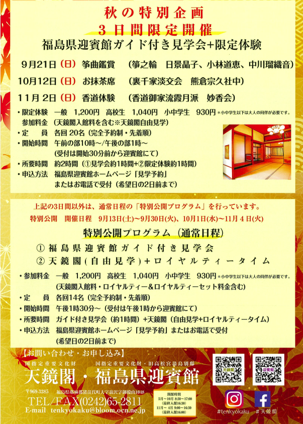 3日間限定で、福島県迎賓館ガイド付き見学会+限定体験を開催します!