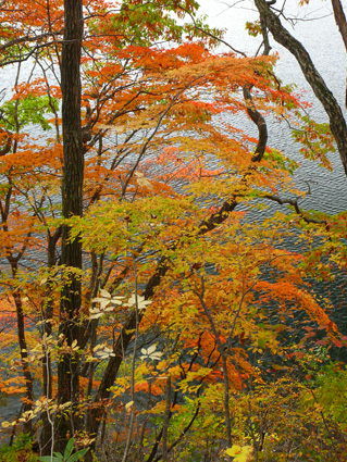 湖岸の木々は充分に色付き、訪れる人の目を楽しませてくれます。