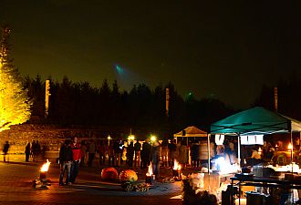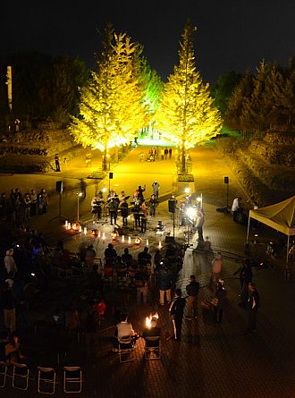 また、広場ではオープニングセレモニーが行われました。音楽隊の演奏や飲食のブースが設けられ温かい食べ物が振る舞われるなど、来場者は思いおもいにライトアップを楽しんでいました。