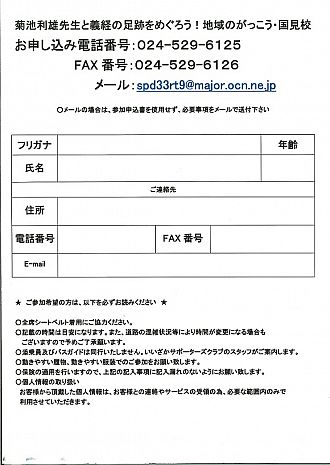 いいざかサポーターズクラブが主催で、地域のがっこうという事業の一環で『義経を通して、国見町を知る ~入門編~』を行います。