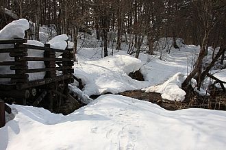 とは言え、遊歩道は今も1mくらいの積雪があります。スノーシューか、雪は締まっているので長靴が必要です。