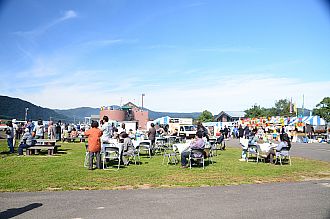 イベントは、ランウェイ(滑走路)、ステージ、キッズパークの3本柱で構成され、大人から子供までが楽しめるイベントとなりました。りんご祭りという名のとおり、旬のくだもの(りんご・なし・ぶどう)お始め、ご当地グルメなどの物販・飲食ブースが軒を並べ、土日合わせて県内外から約8,700人の入場者を数えました。また、家族連れが多く、車での来場の他、ライダーもみられました。