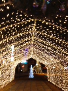 光のトンネルの向こうには光輝くツリーがあります。