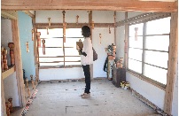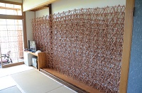 柿渋と割り箸を組み合わせた作品は、旅館の一部屋に展示してあります。
