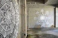 こちらは雪の結晶を模した作品で、廃業した旅館の跡地にスプレーを使用して描かれたそうです。