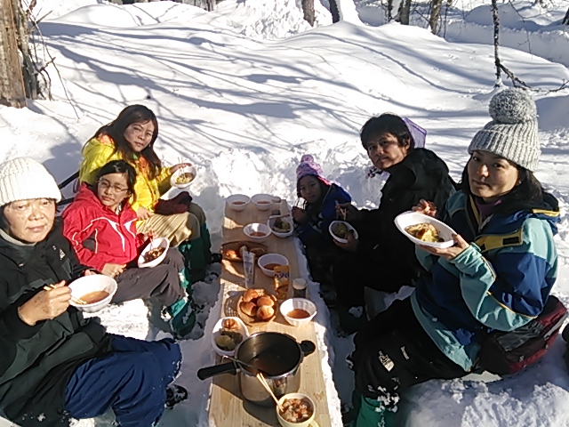 歩いた後は、自分でスコップで雪のイスとテーブルを作ってダッジオーブンランチを楽しんで頂きました。良い思い出になりましたでしょうか?ぜひまた遊びに来て下さいねw ご利用ありがとうございましたm(__)m