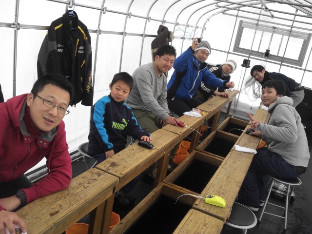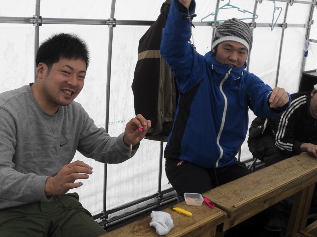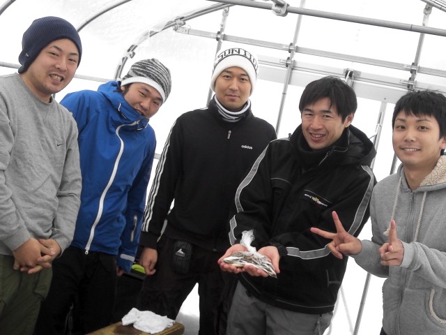 今日の白樺エリアはようやく湖流も落ち着き、ワカサギ君たちの喰い気も戻ってきたようで釣果は上向きでした!竿頭は地元会津若松のN隊長(^_^)ゞさすがです!!