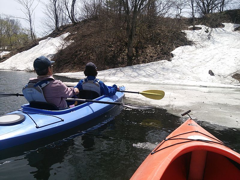 今年のゴールデンウィークは、雪見&花見という贅沢ツアーが楽しめますよ\(^o^)/ 今日の午前中は、人生の先輩ご姉弟をポカポカ陽気で気持ちのいい湖面にご案内しました。とても楽しんで頂けたようでよかったです。ぜひまた遊びに来て下さいね。ご利用ありがとうございました!!