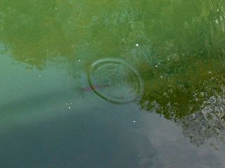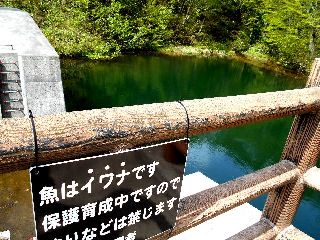 昔から岩魚が生息しているが、保護育成中ですので釣りはしないで下さいね。竿を出さなければ羽虫を捕食する姿が見えます。一昨年までは尺岩魚が何本か見えたのですが、去年から大物は見えなくなりました。鉛筆ぐらいの二年子は複数見れましたので、自然繁殖している証です。