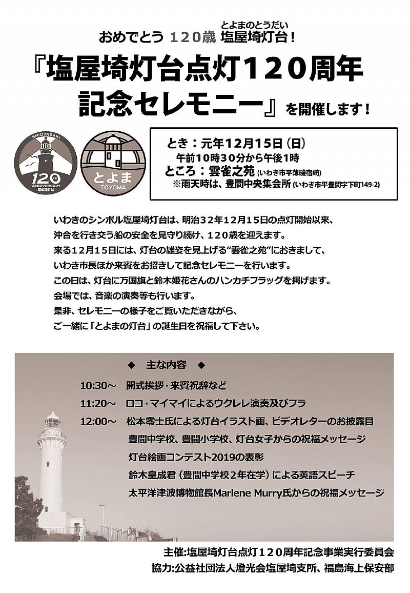 4月以降、節目の年に相応しい取り組み・イベント等を通じて灯台と共生する「とよま地区」の元気と活力を発信してきました。記念行事の締め括りといたしまして、今週末の14・15日は講演会とセレモニーを開催いたします。