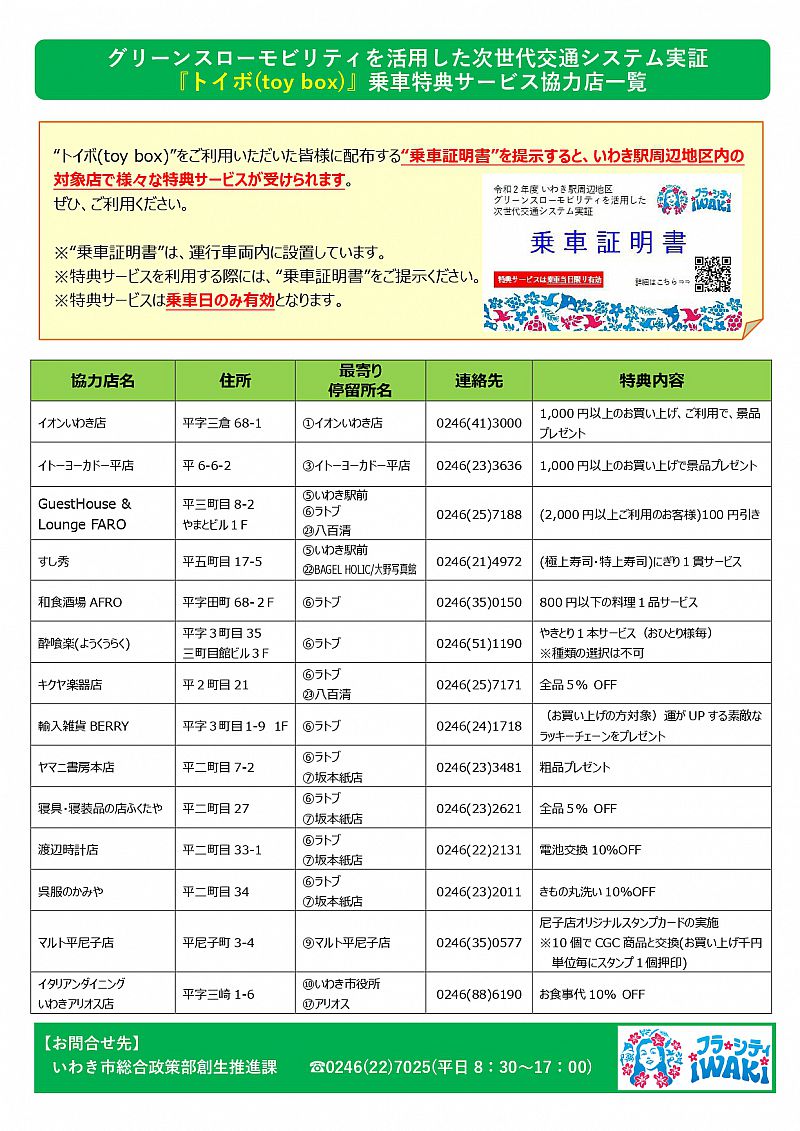 また、バスをご利用いただくと、乗車証明書をお渡しいたします。