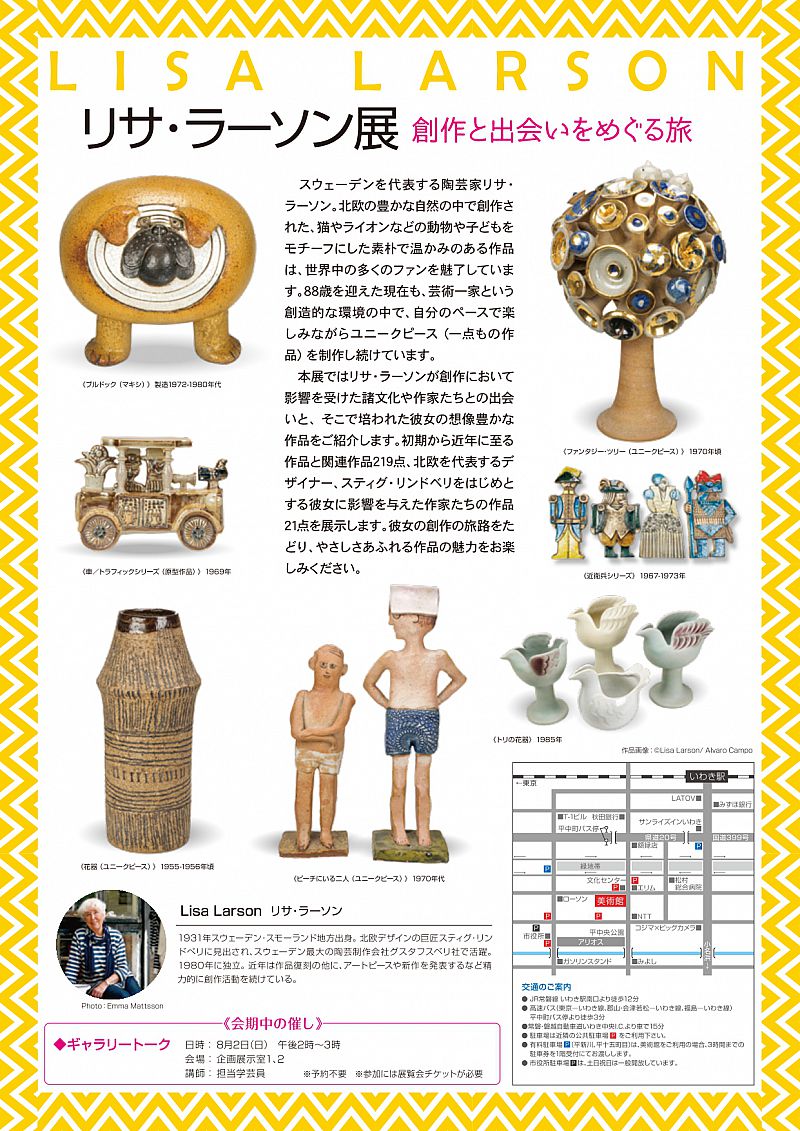 企画展ではリサ・ラーソンが創作において影響を受けた諸文化や作家たちとの出会いと、そこで培われた彼女の想像豊かな作品をご紹介します。